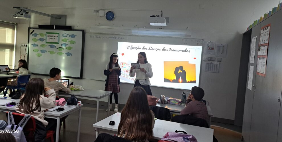No dia 10 de novembro, a turma A do 4.ºano do Centro Escolar de Vila Verde viveu uma experiência diferente e muito especial. Um grupo de alunos assumiu o papel de professores e preparou uma aula dedicada aos lenços dos namorados, símbolo do património cultural do concelho de Vila Verde.