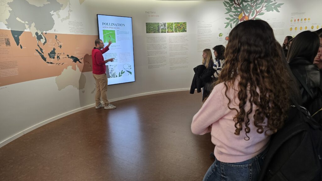 No Museu do Chocolate, os alunos tiveram oportunidade de conhecer o irresistível mundo do chocolate com uma experiência interativa que revela a fascinante jornada do cacau — desde as suas origens sagradas há 5.000 anos até ao doce apreciado em todo o mundo nos dias de hoje. Descobriram também as antigas civilizações, as práticas agrícolas sustentáveis e os segredos da produção: desde a colheita e a fermentação até à torrefação e à transformação em chocolate, tendo também a possibilidade de provar o cacau em diferentes fases e sentir a evolução dos seus sabores. Exploraram ainda o impacto cultural do chocolate e terminaram a visita vendo uma verdadeira fábrica em funcionamento, onde os grãos de cacau são transformados em criações bastante premiadas. A experiência terminou com uma prova de diferentes chocolates produzidos na Fábrica de Chocolates. Mais do que uma visita, foi uma viagem para ver, tocar, cheirar e saborear a extraordinária história do chocolate.
