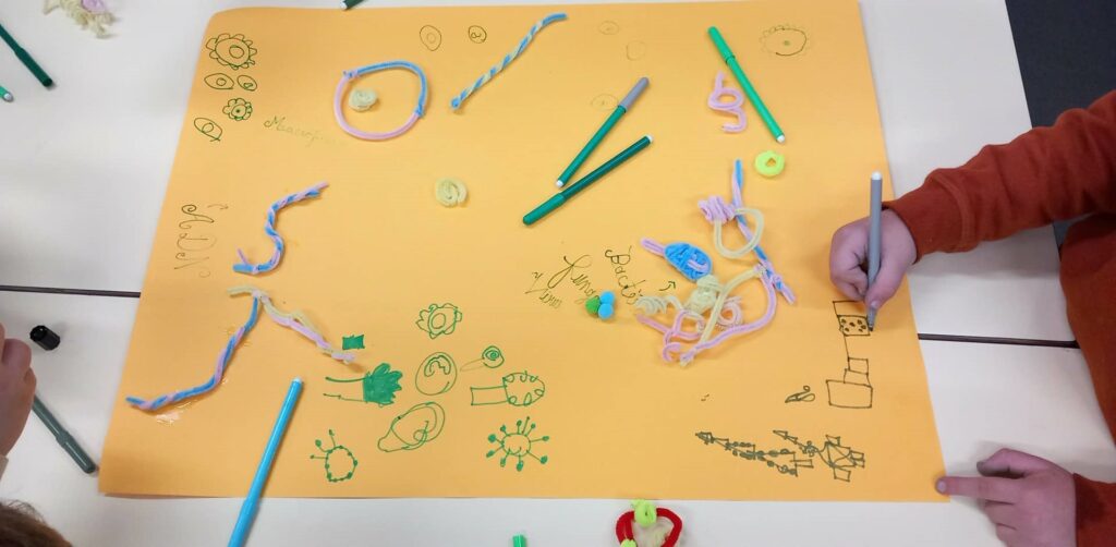 Esta atividade foi organizada pela equipa de Comunicação e Divulgação Científica e Tecnológica, Celina Barros, e dinamizada pelas Investigadoras Cientistas Marcela Oliveira e Inês Pereira. Fizeram observação de microrganismos ao microscópio, fizeram slime, e outras experiências fantásticas! Como conclusão, fizeram dois cartazes com montagens, colagens e desenho sobre o que tinham observado e aprendido com estas experiências.