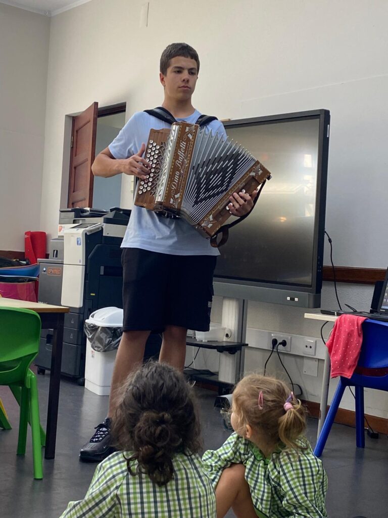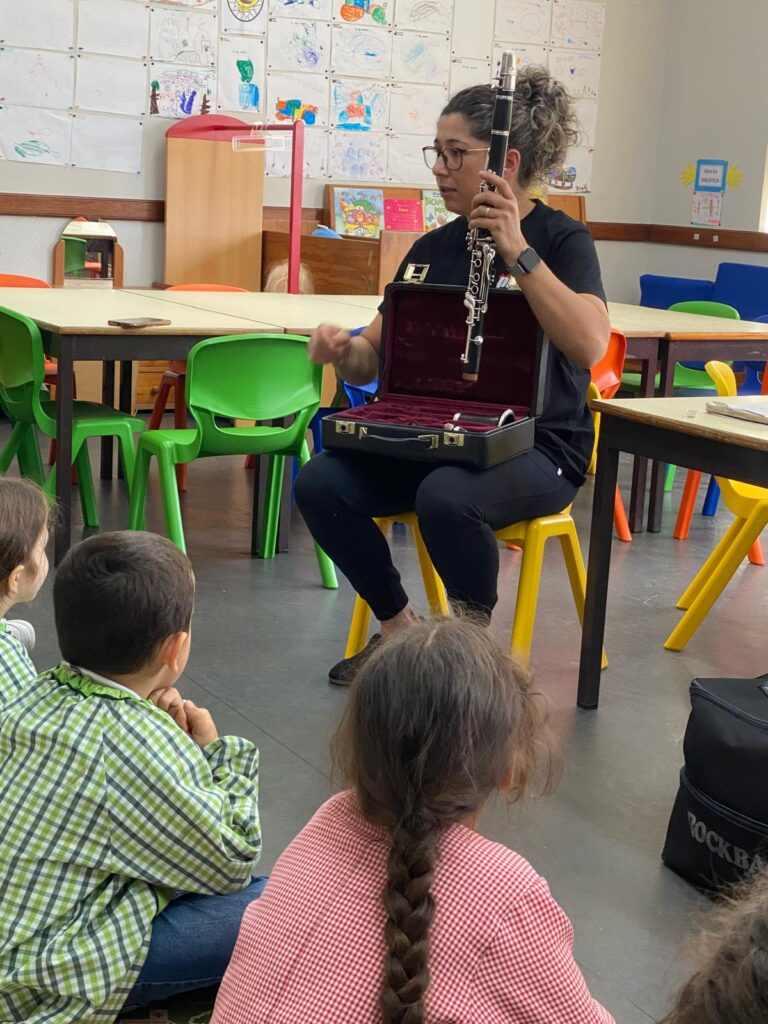 No Dia Mundial da Música, 1 de outubro, a EB de Barbudo desenvolveu uma atividade em parceria com pais e encarregados de educação. Ao início da tarde, tivemos a visita do Rodrigo Rodrigues, irmão de uma aluna do 3.º ano e ex-aluno desta escola, que nos brindou com algumas músicas portuguesas tocadas na sua concertina. Foi bonito e um orgulho para este Estabelecimento! Para além do Rodrigo, tivemos a presença da Sra. Carla Alves, mãe de uma aluna do Jardim de Infância e de um ex-aluno do 1.º ciclo que, partindo da sua experiência como professora de música e ex-integrante de uma Banda de Música, desenvolveu uma atividade muito interessante onde apresentou aos alunos vários instrumentos musicais, permitindo que eles os manuseassem e os tocassem ao som de uma música. Apresentou ainda, de forma muito apelativa, o instrumento que tocava na banda de música: o clarinete! Montou, explicou e tocou!