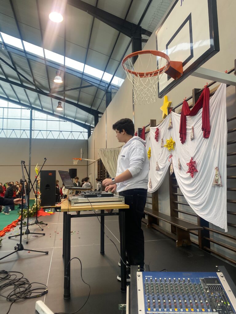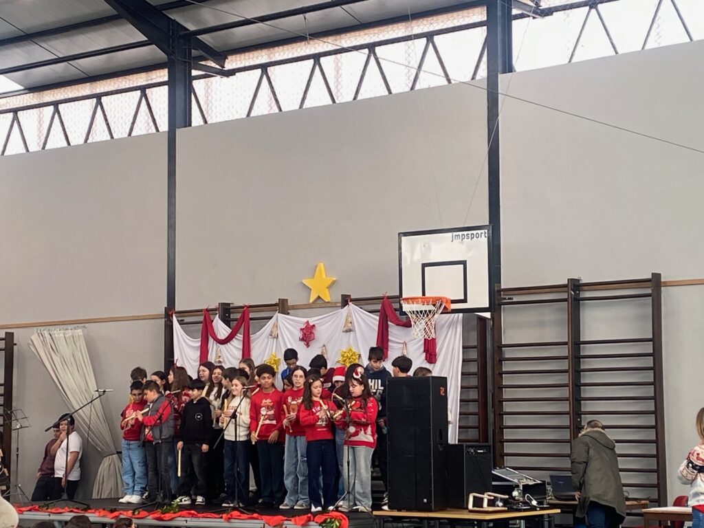 De seguida, os alunos dirigiram-se para o pavilhão desportivo, para atuarem de distintas formas: canções, danças, declamação, interpretações com bateria e piano, trial e música para todos dançarem.