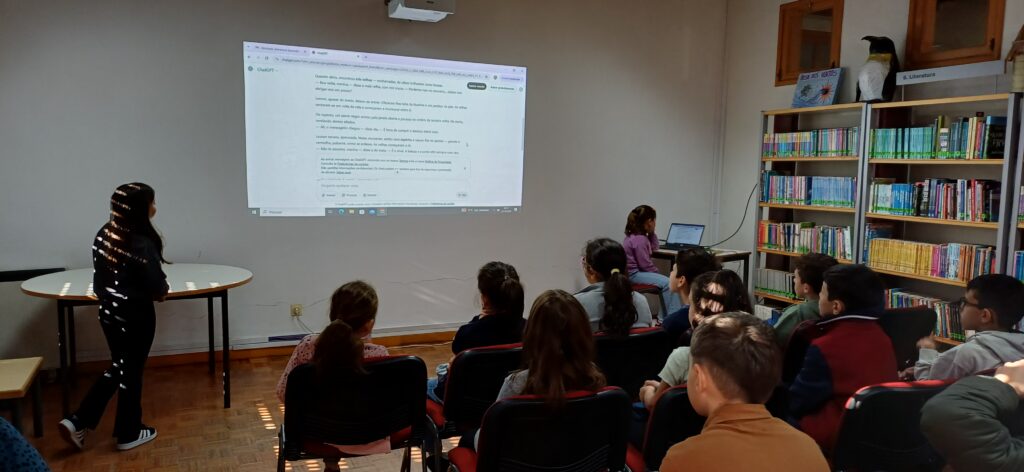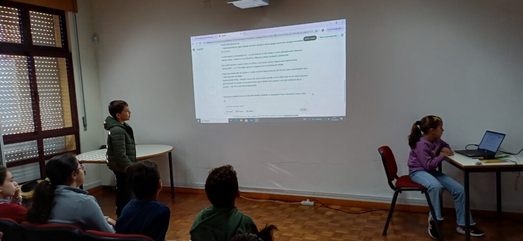 Os alunos puderam apreciar e comparar histórias (com e sem IA), tendo registado sucintamente as conclusões por escrito, para serem publicadas posteriormente no Jornal Escolar do agrupamento de escolas.