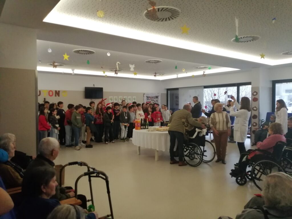 Nesta visita, os alunos apresentaram alguns números musicais e declamaram algumas poesias alusivas à Quadra Natalícia, presenteando os idosos com alguns trabalhos realizados por eles. Ainda cantámos os Parabéns a uma residente do Lar, a senhora D. Alzira, que completou, neste dia, 100 anos.