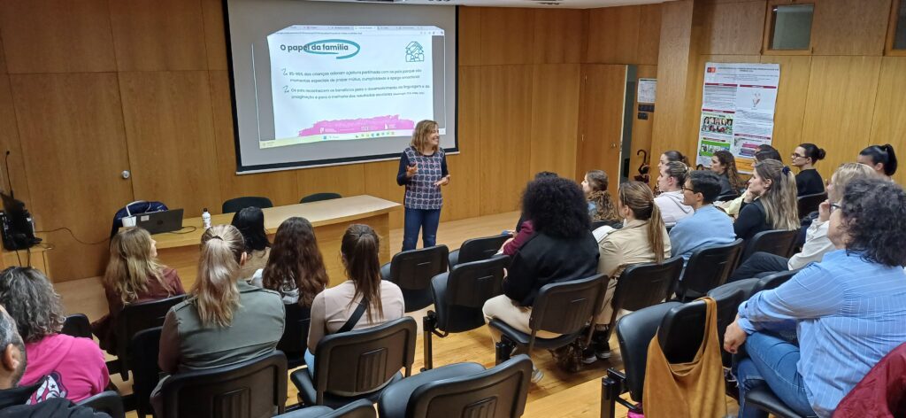 O objeto desta sessão inicial, integrada no Mês Internacional da Biblioteca Escolar (MIBE 2025) e que contou com a presença de mais de 25 encarregados de educação, foi dar a conhecer a fundamentação, os benefícios e a operacionalização do desafio proposto pela Rede de Bibliotecas Escolares (RBE) e pela Fundação Belmiro de Azevedo que visa a promoção da leitura em família.