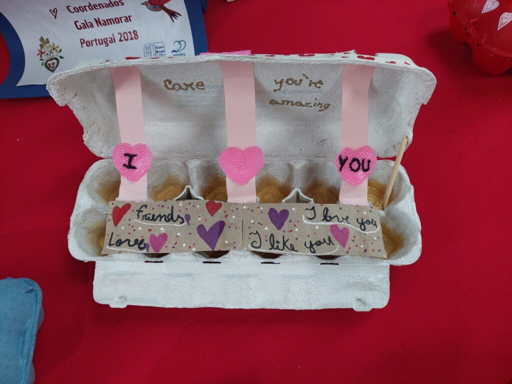Com criatividade, empenho e o apoio das famílias, as caixas de ovos ganharam nova vida, sendo decoradas, pintadas e personalizadas com corações, mensagens e símbolos alusivos ao amor e à amizade. Cada “Love Box” tornou-se única, refletindo não só a originalidade dos alunos, mas também a importância da reutilização de materiais e da consciência ambiental.