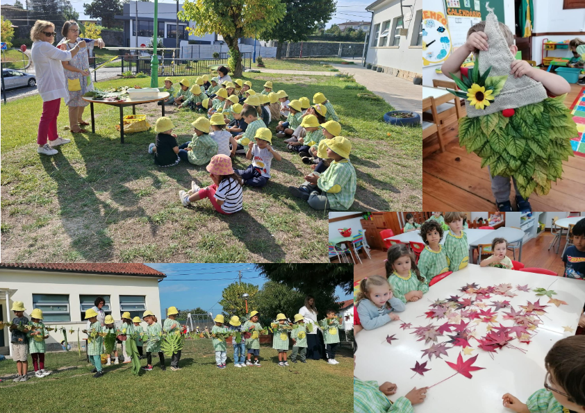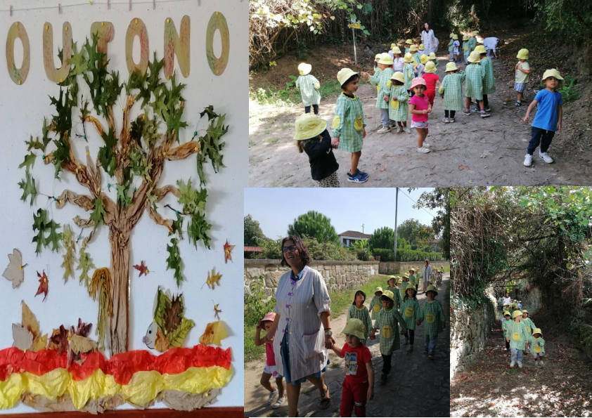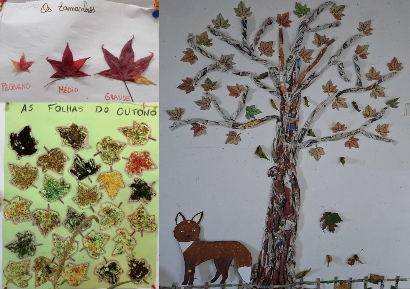 Um dos momentos altos foi a montagem de um “estendal de outono” com as folhas recolhidas – uma exposição natural que decora e ensina – e a decoração da entrada da escola com elementos característicos desta época e com o duende “Folhinhas”. Nas caminhadas, houve ainda tempo para saborear os deliciosos frutos da estação, como uvas, castanhas e figos.