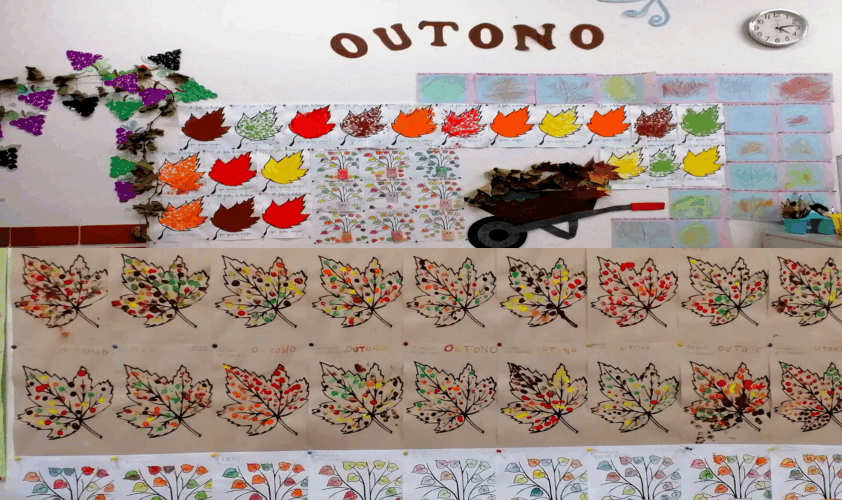 Um dos momentos altos foi a montagem de um “estendal de outono” com as folhas recolhidas – uma exposição natural que decora e ensina – e a decoração da entrada da escola com elementos característicos desta época e com o duende “Folhinhas”. Nas caminhadas, houve ainda tempo para saborear os deliciosos frutos da estação, como uvas, castanhas e figos.