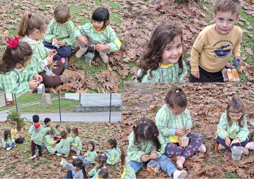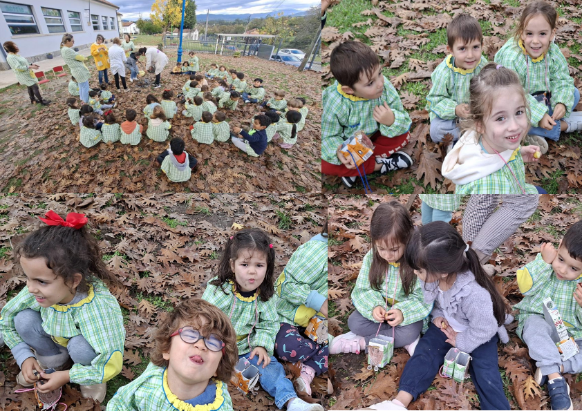 Em grande roda, cantámos as nossas canções e rimos com o nosso próprio S. Martinho, que, montado num cavalinho de faz de conta, encenou a lenda da capa, mostrando-nos o verdadeiro significado de partilha e bondade. Porém, antes do banquete, todas as crianças exibiram os seus cestinhos de castanhas! Feitos a partir de pacotes de leite reciclados (uns da escola, outros trazidos de casa) e decorados com prazer, estas “cestinhas de luxo” estavam prontas para receber o tesouro acabado de assar. E quando o momento chegou, foi o delírio! Castanhas quentinhas, sumo fresquinho… e a parte mais divertida: o ritual de nos enfarruscarmos! As cascas e as cinzas das castanhas serviram de ‘maquilhagem’ de festa. Mãos, narizes e bochechas ficaram pintados de preto, num sinal de que a diversão foi enorme e a sujidade, garantida!