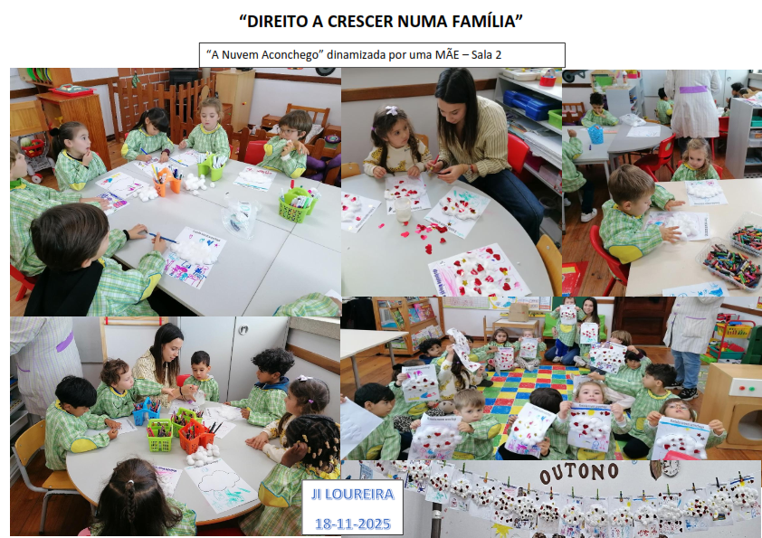 O Jardim de Infância da Loureira, na semana de 17 a 21 de novembro, viveu quatro dias memoráveis dedicados ao afeto, à partilha e à solidariedade, culminando na celebração do Dia Nacional do Pijama. Esta iniciativa anual visa sensibilizar a comunidade para o direito fundamental de todas as crianças crescerem numa família. A adesão das nossas famílias à causa superou todas as expectativas, demonstrando que a parceria entre a Escola e a Família produz resultados notáveis. O envolvimento dos pais, que fizeram questão de acompanhar os seus filhos, alguns inclusive vestindo o pijama, foi um motor essencial para o sucesso da celebração, sendo a generosidade de todos verdadeiramente louvável. Ao longo da semana, as famílias foram as grandes protagonistas, partilharam atividades que enriqueceram a experiência das crianças: foram realizadas leituras de três histórias, uma apresentação de uma canção de Afetos, duas sessões de Yoga e um jogo de dinâmica de Afetividade, que realçou a importância do toque e da proximidade. Promoveu-se ainda uma atividade de artes visuais, “A Nuvem Aconchego”, onde as crianças expressaram a sua felicidade através da criatividade. Além destas atividades, cada família preencheu um coração, numa reflexão sobre o valor do Amor e da Solidariedade, alinhada com a história “A Menina de Cristal”. Estes corações decoraram a Árvore dos Afetos da nossa escola. A Equipa Educativa planeou todo o cenário para garantir que valores como o amor, a partilha, a amizade e a gratidão fossem explorados. Através de diálogos e da história “A Menina de Cristal”, as crianças foram desafiadas a identificar os acessórios que representam conforto, segurança e o sentido de lar, com o pijama, as almofadas, os cobertores e os peluches a tornarem-se os objetos centrais das brincadeiras. O ponto alto foi o Dia do Pijama, que proporcionou um dia inesquecível de alegria, desfiles e dança. A felicidade contagiante das crianças, expressa em abraços e sorrisos, confirmou o sucesso da iniciativa. É com grande satisfação que a Escola reconhece a força das nossas famílias, unida por esta causa nobre. O empenho demonstrado nestes dias especiais não só ajuda muitas crianças a ter o direito de crescer numa família, como também fortalece os laços de afeto na nossa escola. Parabéns a todos!