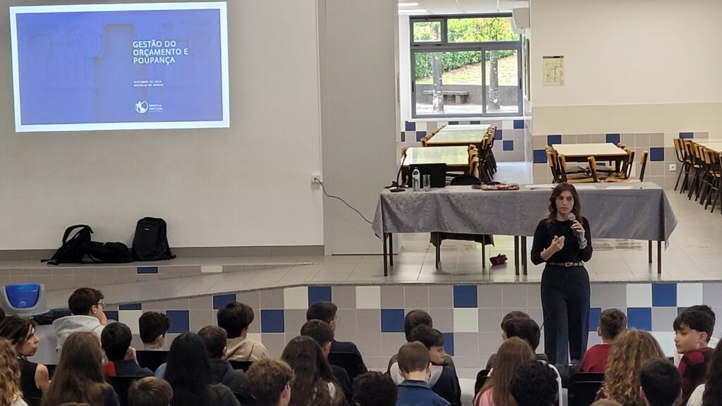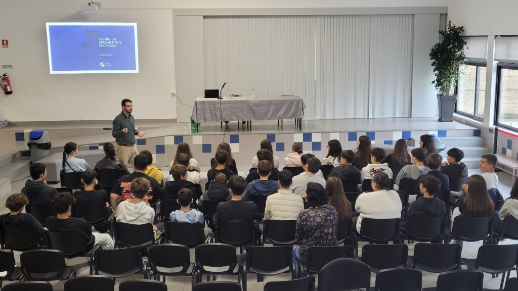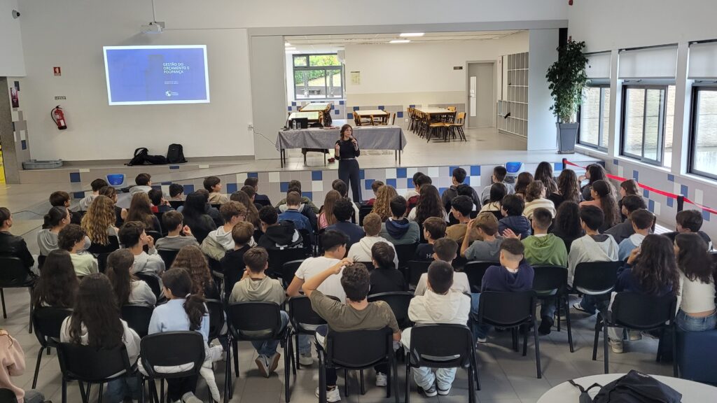 Os alunos ficaram igualmente a conhecer e a identificar diferentes tipos de rendimentos e despesas e, com base nessa informação, foram sensibilizados para a importância de fazer escolhas conscientes.