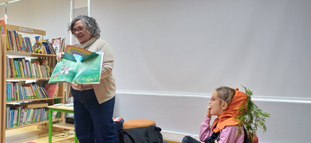 No passado dia 12 de dezembro, a Voluntária da Leitura Maria José Ribeiro dinamizou duas sessões de mediação leitora com todos os alunos da Educação Pré-escolar da Escola Básica Monsenhor Elísio Araújo, a partir do livro “O coelho, a nuvem e o dia de chuva”, de Nicola O’Byrne, editado pela The Poets and Dragons Society, em janeiro de 2025. Os alunos divertiram-se com mais aventuras desta personagem que prendeu o escuro, no livro anteriormente explorado (“O coelho, o escuro e a lata de bolachas”, da mesma autora), e agora, por não gostar de chuva, acabou por aprisionar a nuvem.