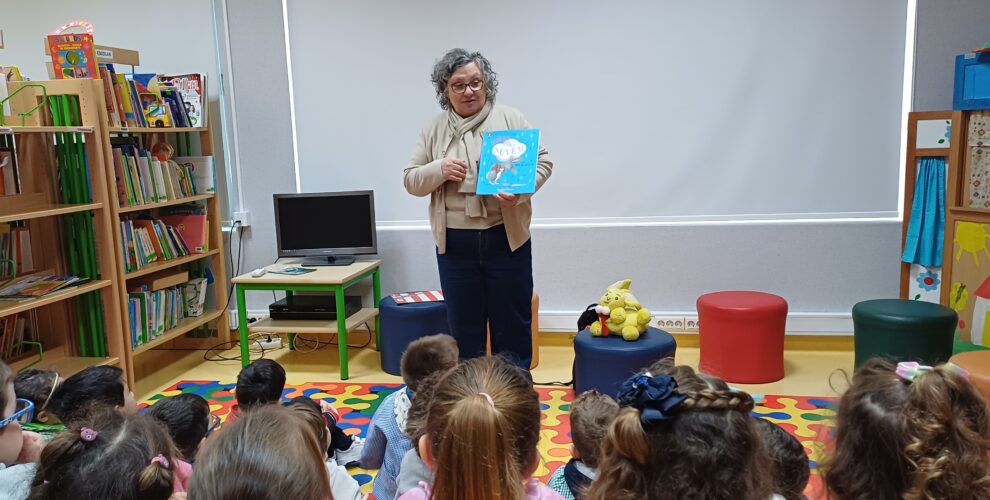No passado dia 12 de dezembro, a Voluntária da Leitura Maria José Ribeiro dinamizou duas sessões de mediação leitora com todos os alunos da Educação Pré-escolar da Escola Básica Monsenhor Elísio Araújo, a partir do livro “O coelho, a nuvem e o dia de chuva”, de Nicola O’Byrne, editado pela The Poets and Dragons Society, em janeiro de 2025. Os alunos divertiram-se com mais aventuras desta personagem que prendeu o escuro, no livro anteriormente explorado (“O coelho, o escuro e a lata de bolachas”, da mesma autora), e agora, por não gostar de chuva, acabou por aprisionar a nuvem.